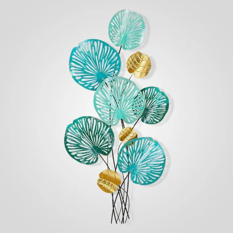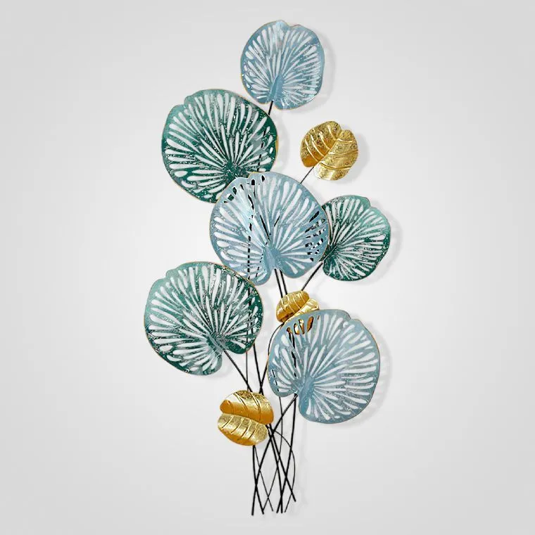 Стильное металлическое настенное панно в форме круглых ажурных листьев, образующих вертикальную композицию в виде элегантного букета