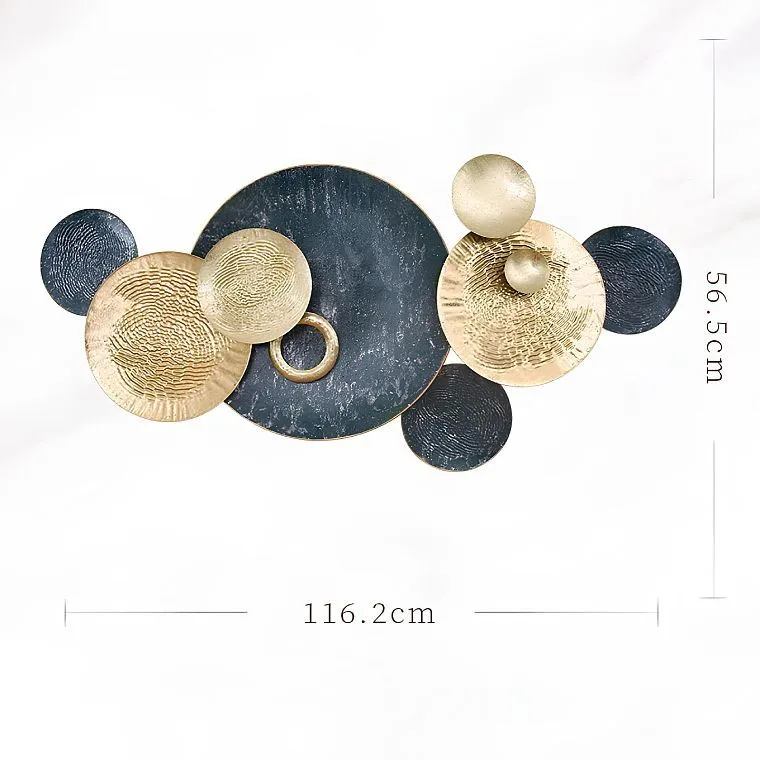 Настенный декор из металла в виде композиции из золотистых и темно-синих дисков с текстурированной поверхностью