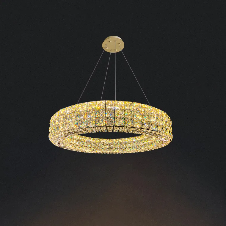Серия кольцевых светодиодных люстр с хрустальными рассеивателями в форме слитков