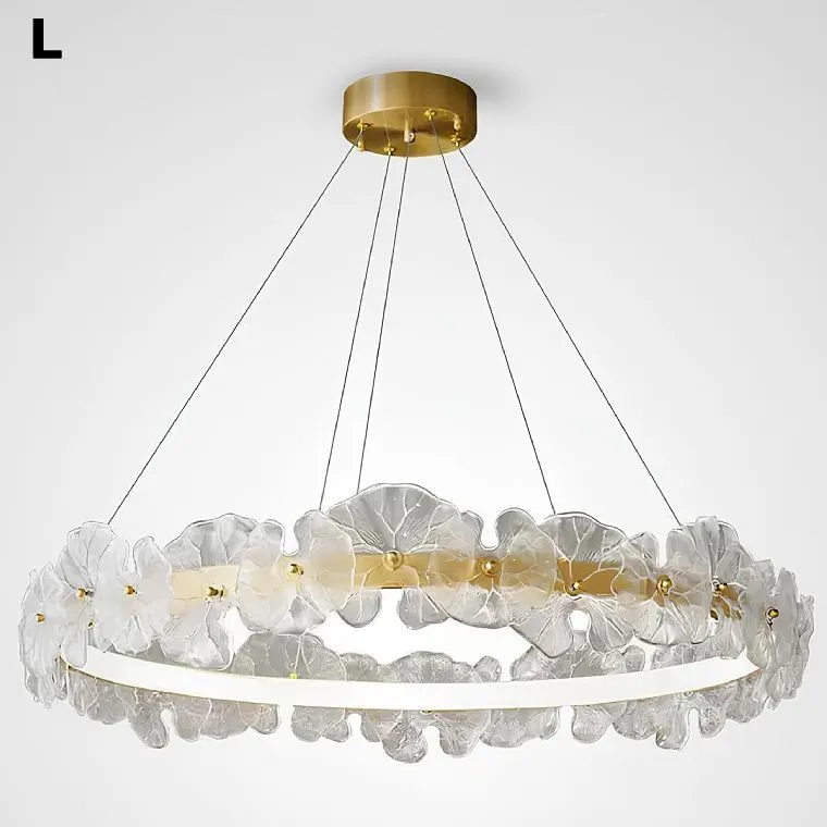 Главной особенностью люстр AURELIUS RING являются детализированные прозрачные листья лотоса, из высококачественного стекла. Каждый лист имеет латунную сердцевину, которая придает им особую привлекательность и натуралистичность. Это придает люстре изысканный вид, который идеально сочетается с любым интерьером.
