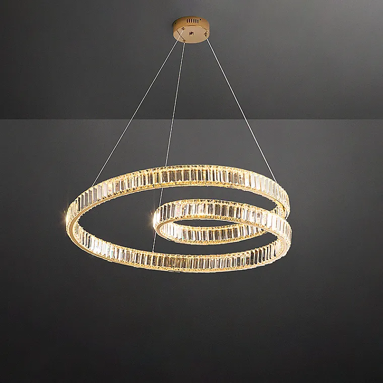 Серия кольцевых светодиодных люстр с прозрачными рассеивателями в виде прямоугольных хрустальных пластин