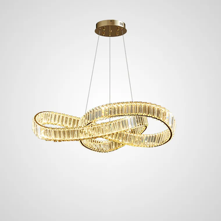 Серия светодиодных люстр на струнном подвесе с прямоугольными хрустальными рассеивателями на замкнутом спиралевидном каркасе