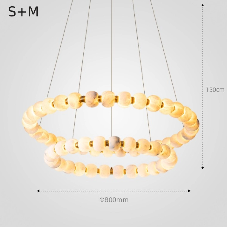 Серия люстр с шарообразными плафонами из мрамора на кольцевом каркасе