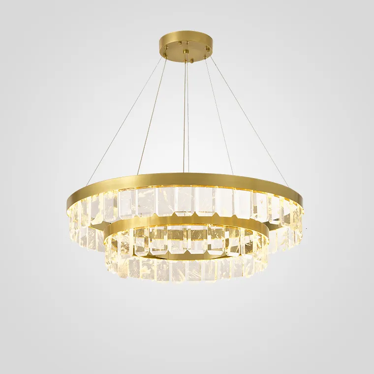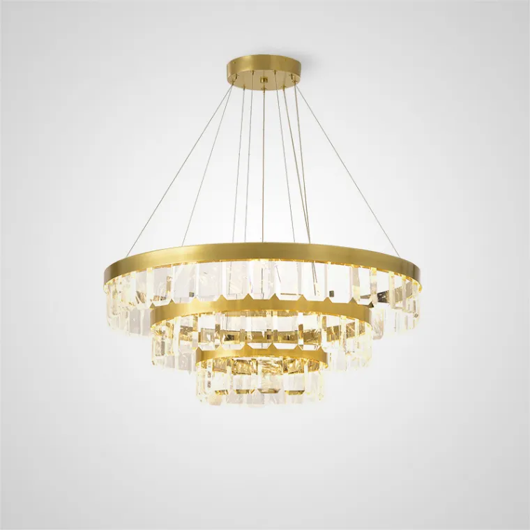 Серия кольцевых светодиодных люстр на струнном подвесе c многогранными хрустальными рассеивателями прямоугольной формы