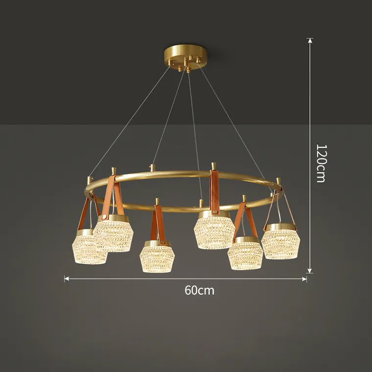 Серия кольцевых светодиодных люстр с многогранными рельефными плафонами на кожаных ремешках
