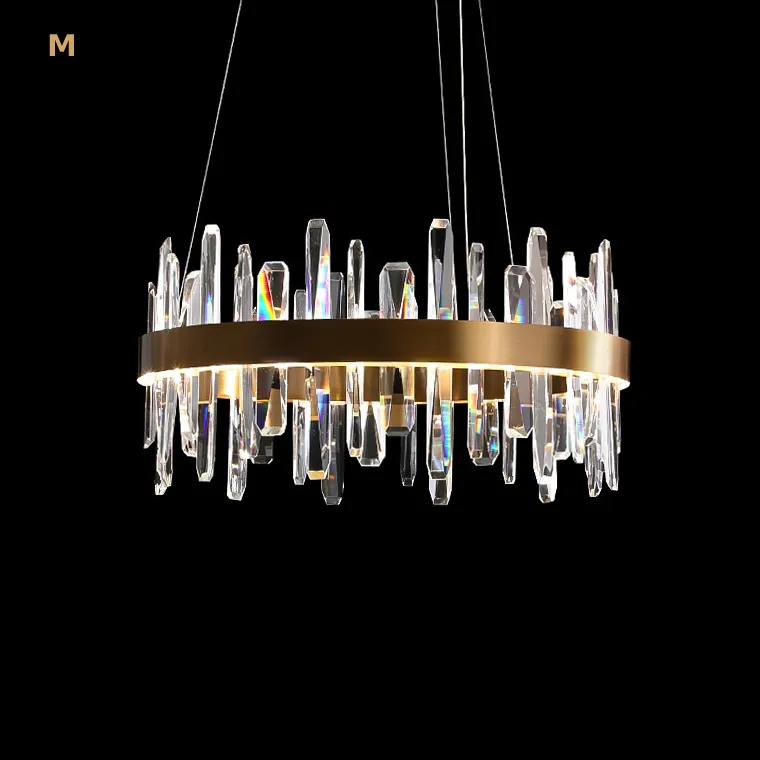 Серия дизайнерских люстр с LED-свечением по контуру и вытянутыми хрустальными камнями на кольцевом каркасе