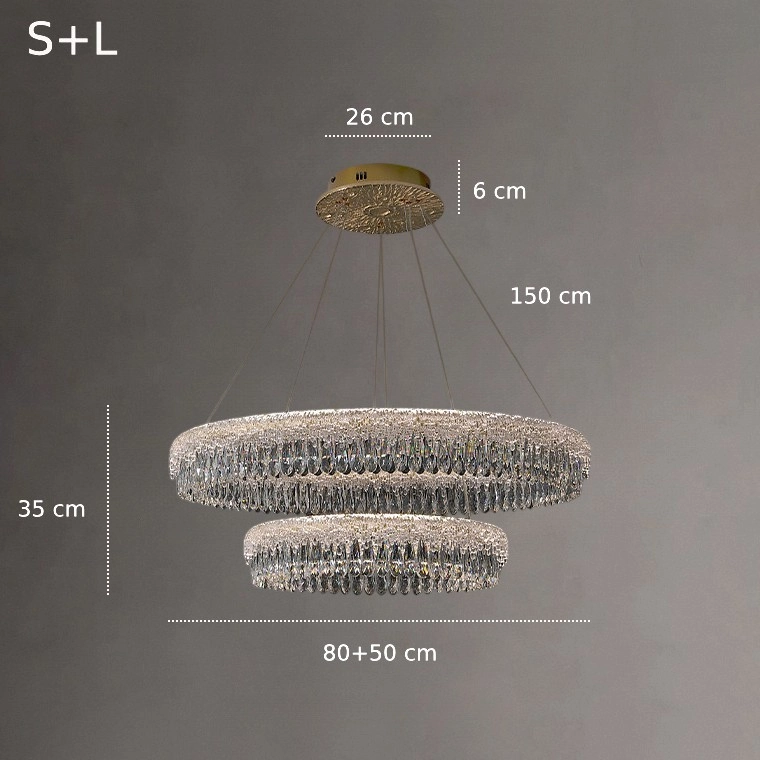 Серия кольцевых люстр с рассеивателем из фактурного стекла, имитирующим лед, и подвесками в виде капель
