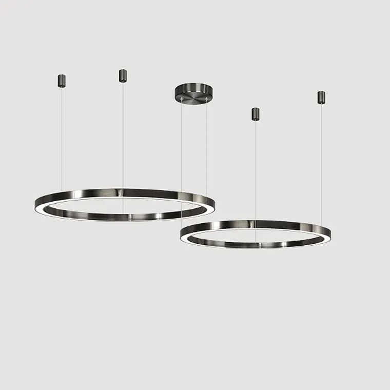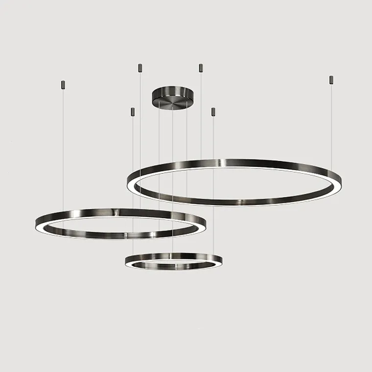 Серия светодиодных люстр в виде комбинации колец разного диаметра с LED-подсветкой по контуру корпуса в черном цвете