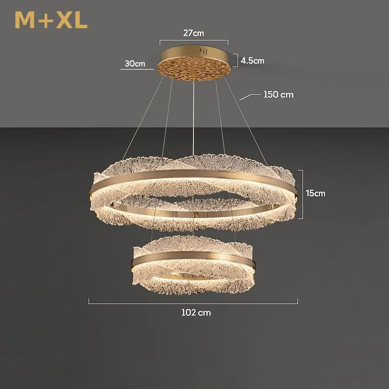 Эти кольцевые люстры станут идеальным решением для спален и гостиных, где превратятся в главный акцент, наполняя пространство мягким светом и создавая уютную атмосферу. Если вы ищете что-то более грандиозное, обратите внимание на вариант с двойным кольцом, который добавит вашей гостиной или большому залу торжественности и величия, превращая обычный вечер в незабываемое событие.