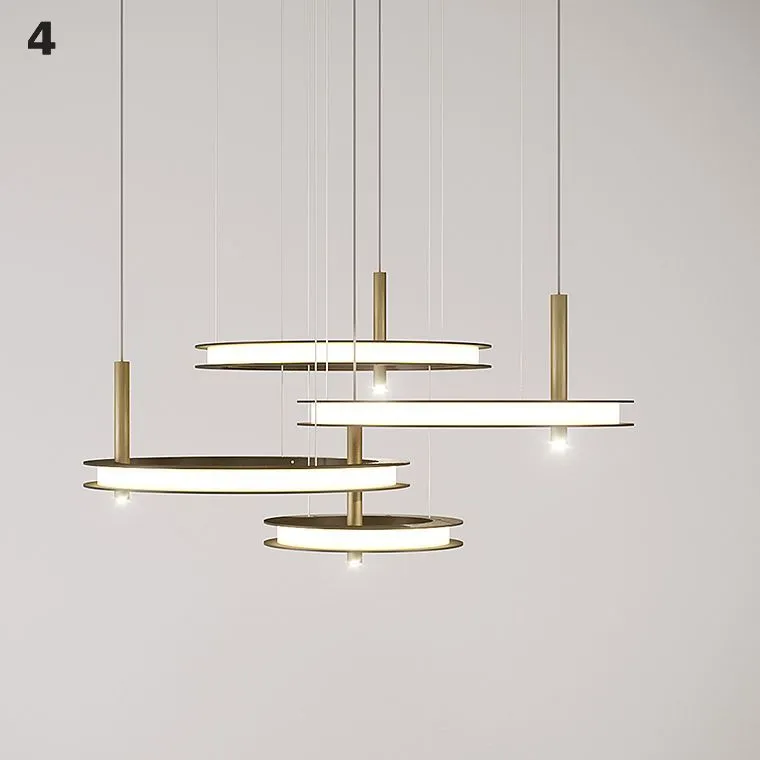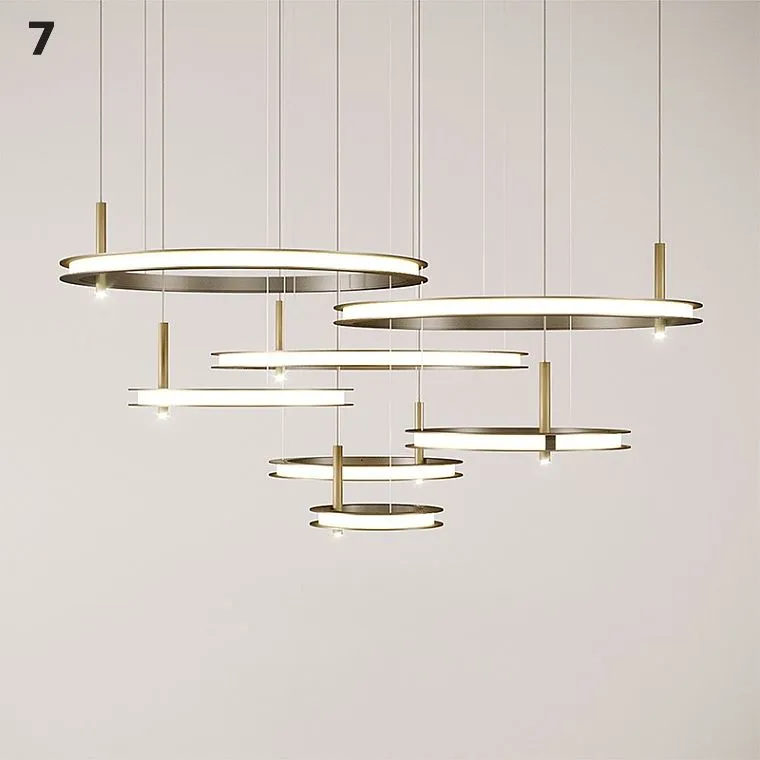 Светодиодная люстра в виде комбинации колец разного диаметра с цилиндрическими спотами