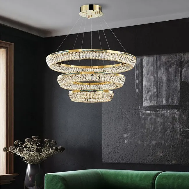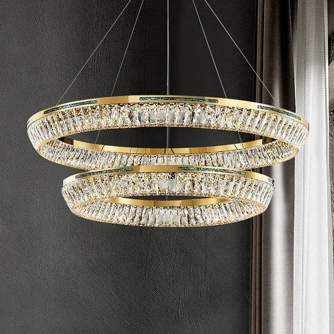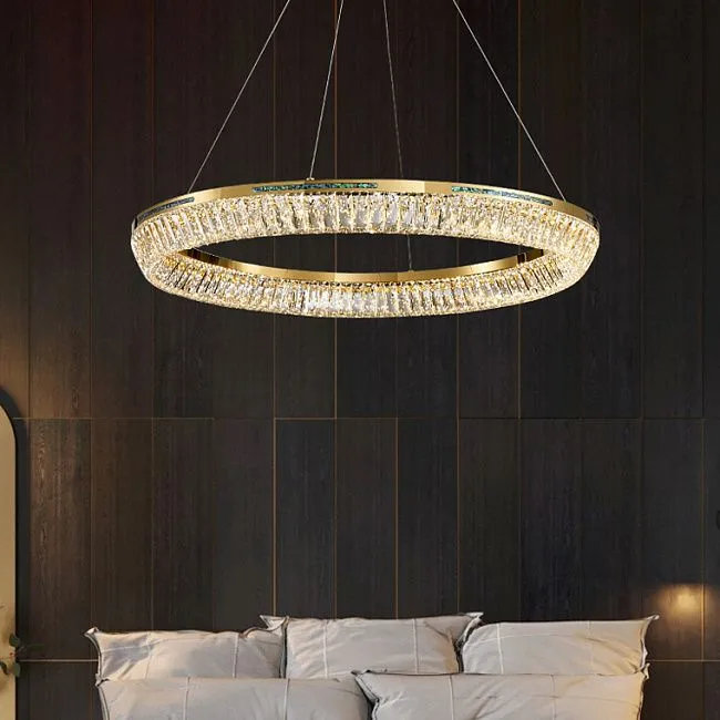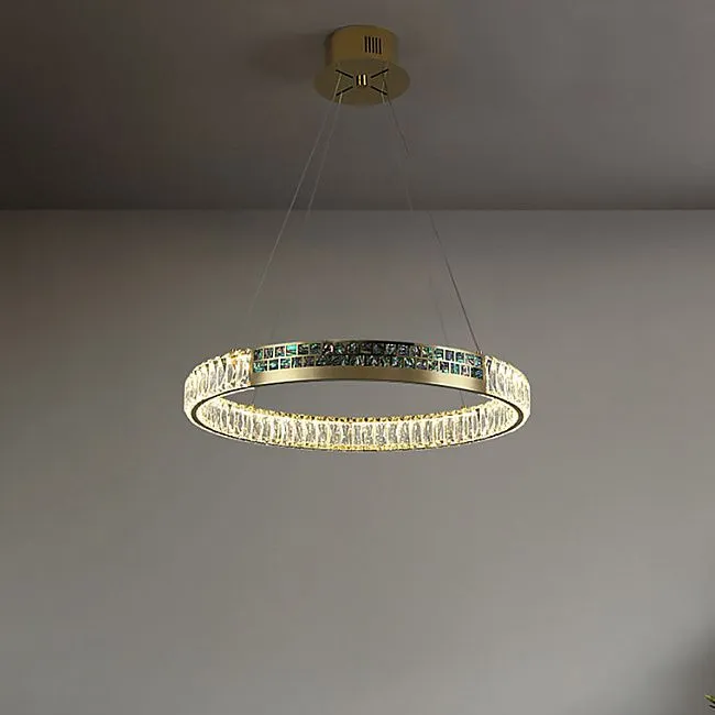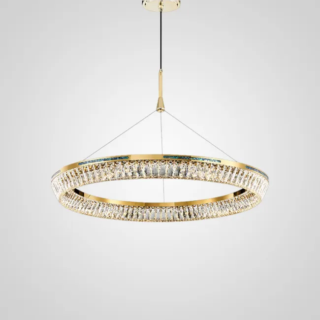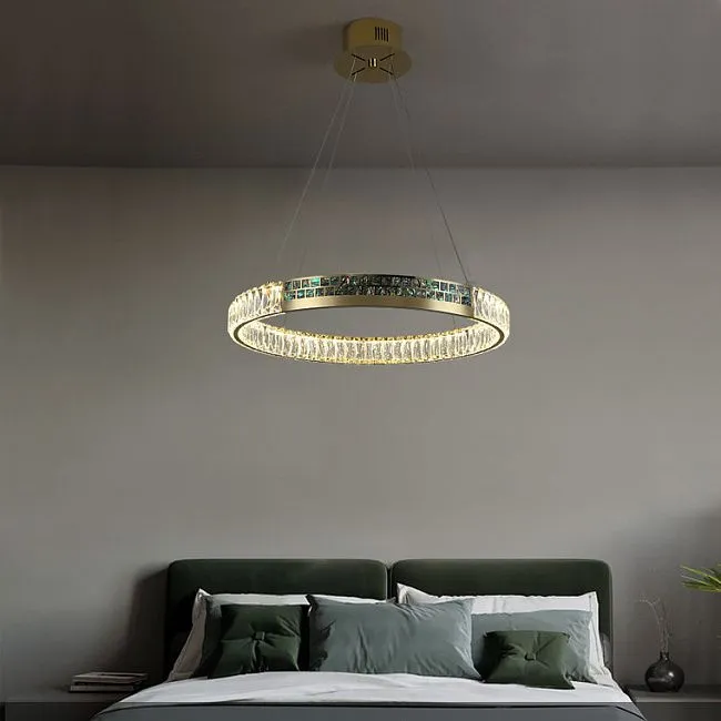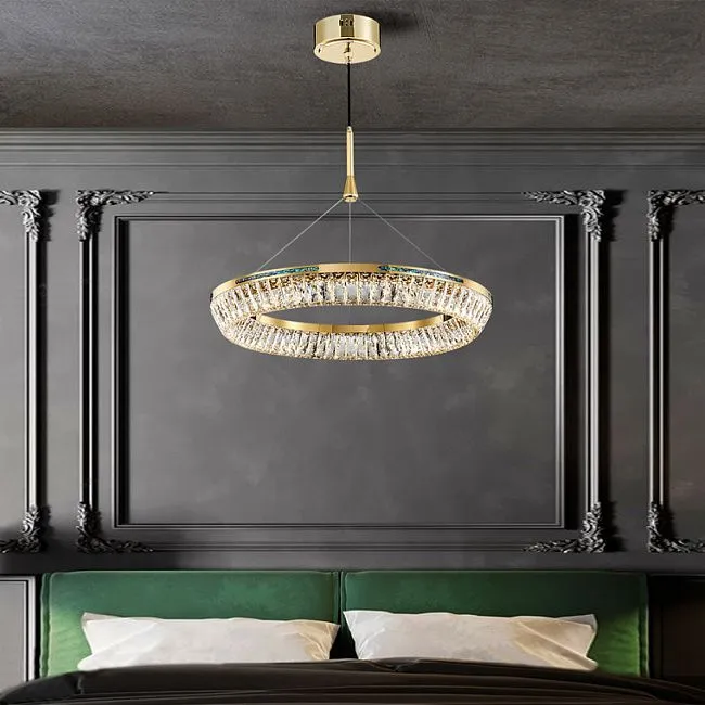 Насыщенный свет, многогранные хрустальные рассеиватели и перламутровые вставки на кольцевом корпусе - все это делает кольцевую люстру GERTRUDA ONE незабываемым элементом декора в вашем доме. Серия светодиодных люстр удобна и экономична, и позволит вам не беспокоиться о замене лампочек на протяжении многих лет. Высота подвеса 180 см позволяет легко разместить люстру в любом помещении, а кольцевая форма плафона с золотым каркасом придают люстре стильный и элегантный вид. Приобретите кольцевую люстру GERTRUDA ONE и украсьте свой дом сиянием!