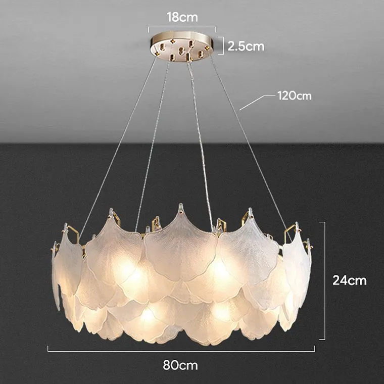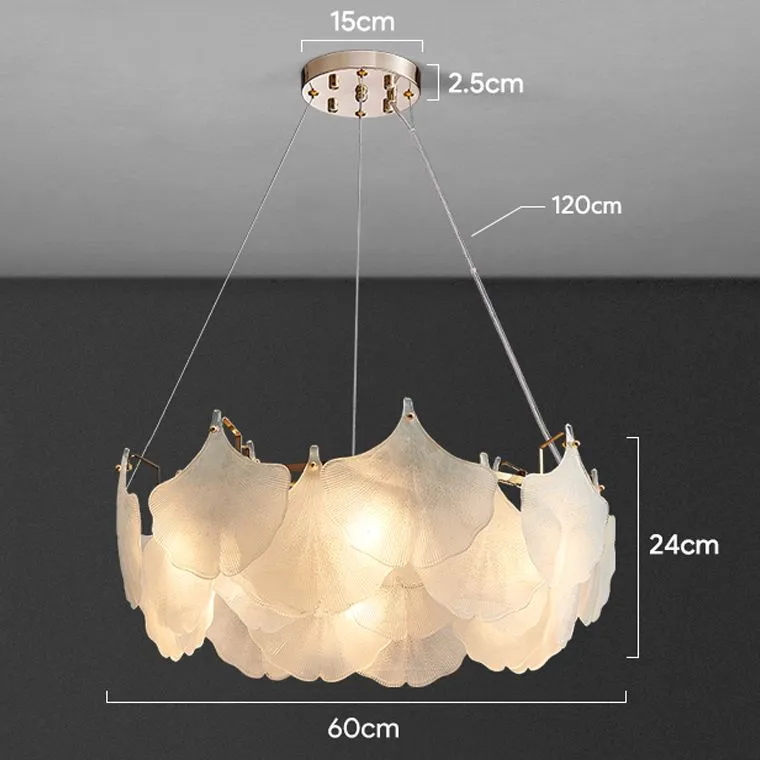 Ginkgo — серия дизайнерских кольцевых люстр с уникальным стеклянным декором в виде листьев. Эта модель вдохновлена природными формами и станет центральным элементом интерьера, привнося в пространство гармонию, мягкость и визуальную глубину.