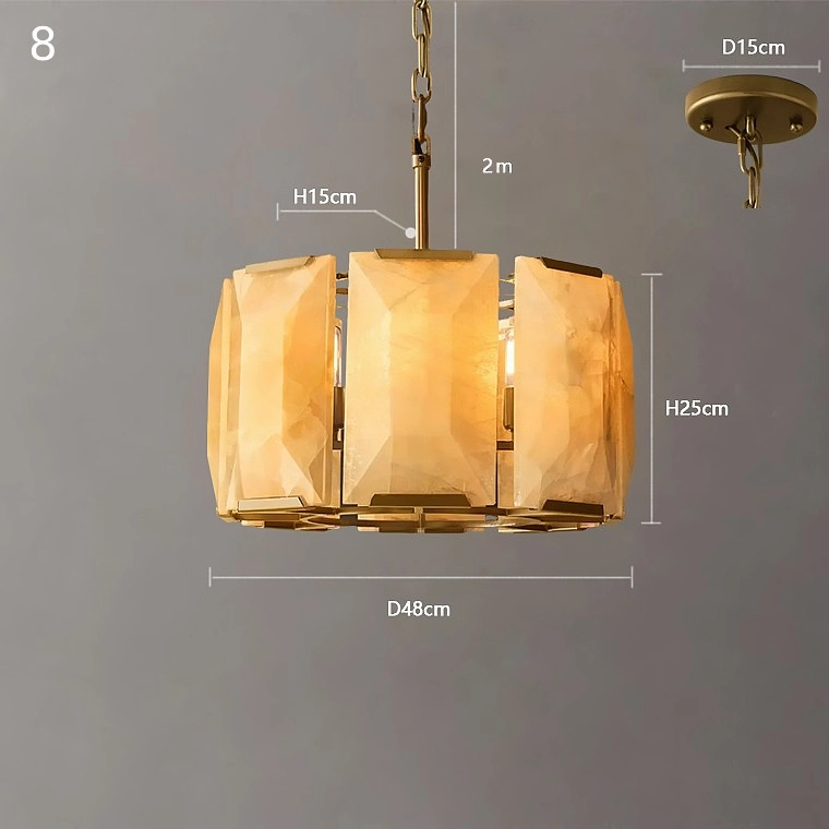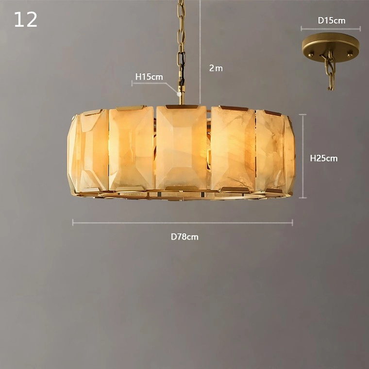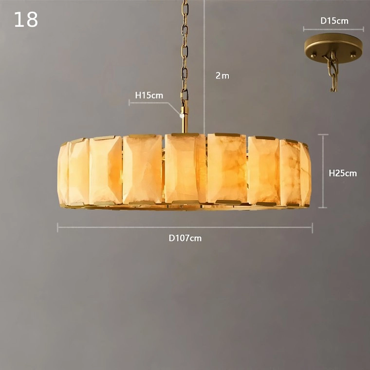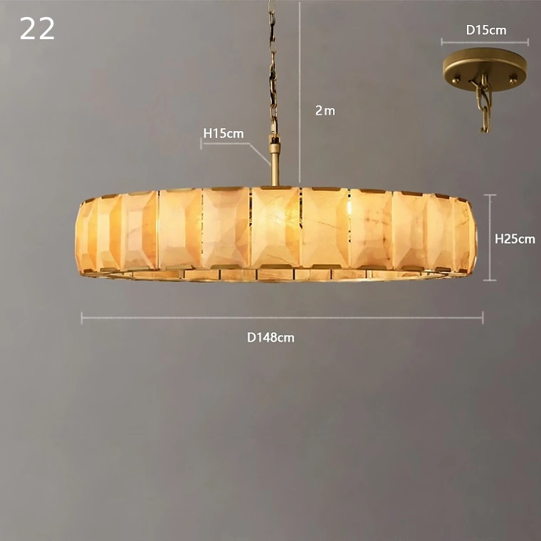 Серия кольцевых люстр с фацетированными плитками из кальцита на круглом металлическом каркасе