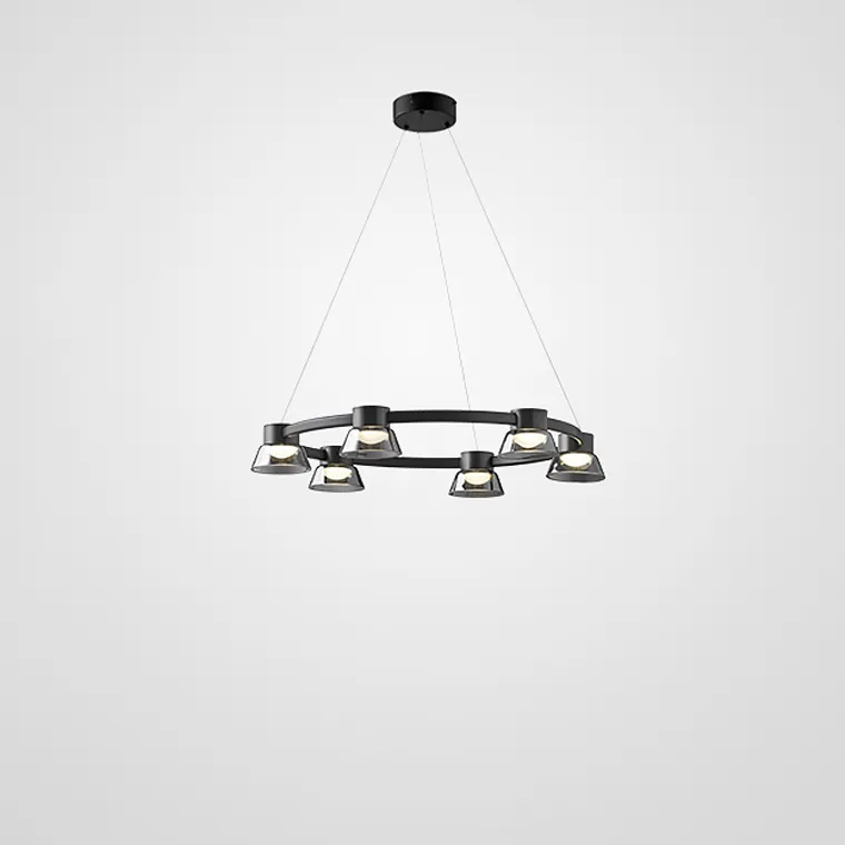 Серия кольцевых светодиодных люстр с шаровидными плафонами под стеклянными рассеивателями в форме чаши