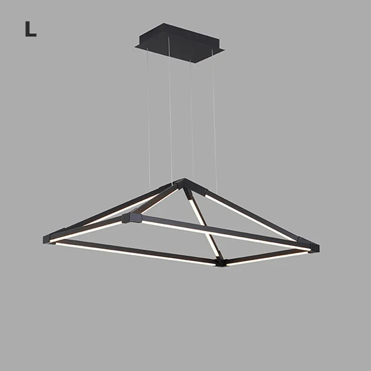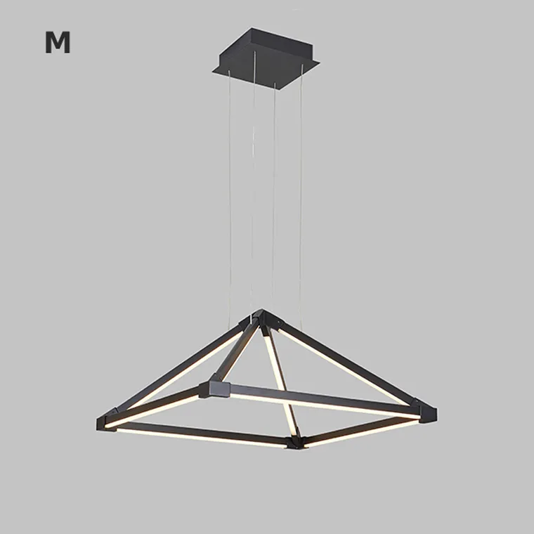 Подвесная люстра в минималистичном стиле с плафонами в виде комбинации черных стержней со светодиодной подсветкой, образующих пирамиду