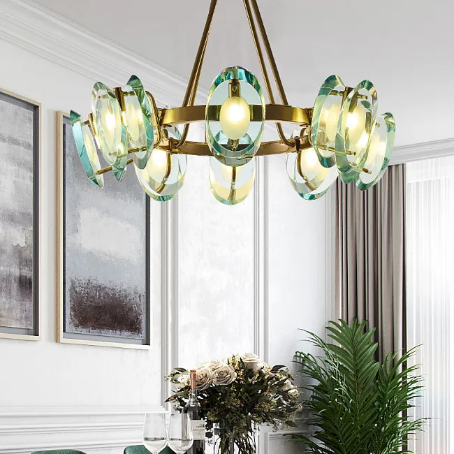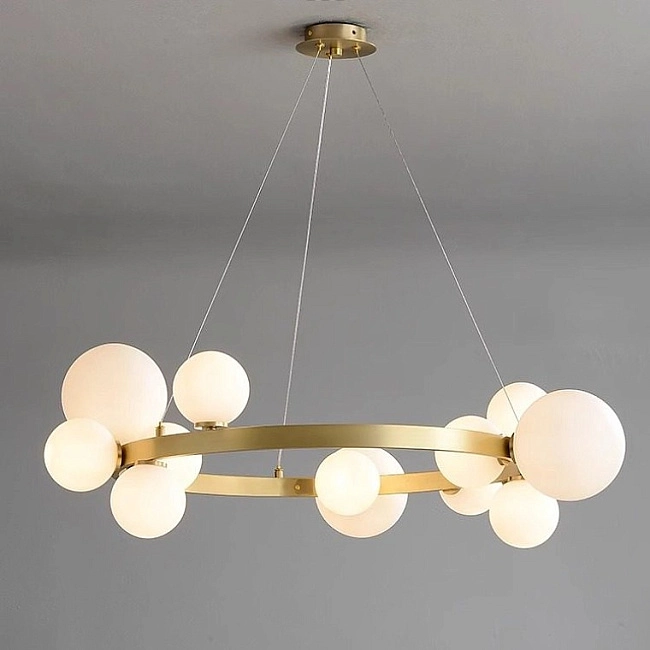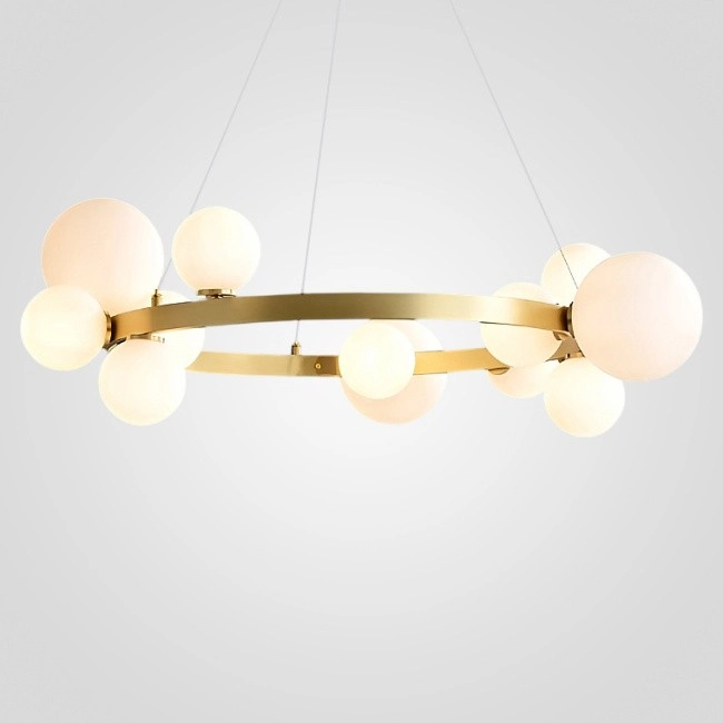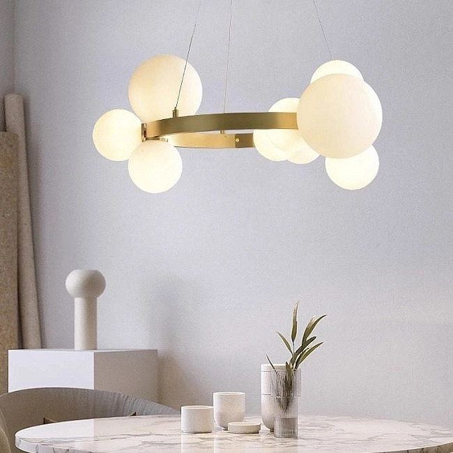 Серия светодиодных люстр с цветочным декором из металла, прозрачного и матового стекла на кольцевом каркасе