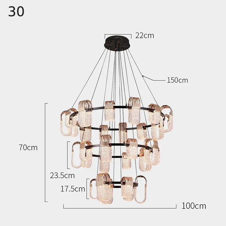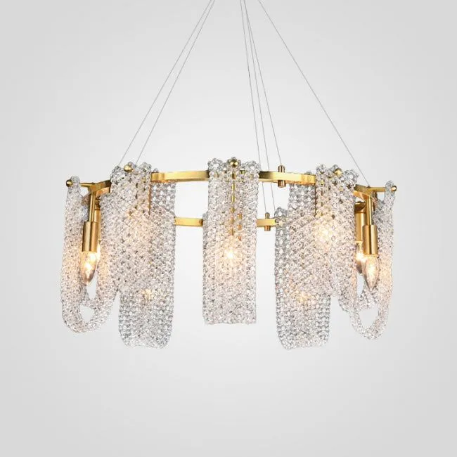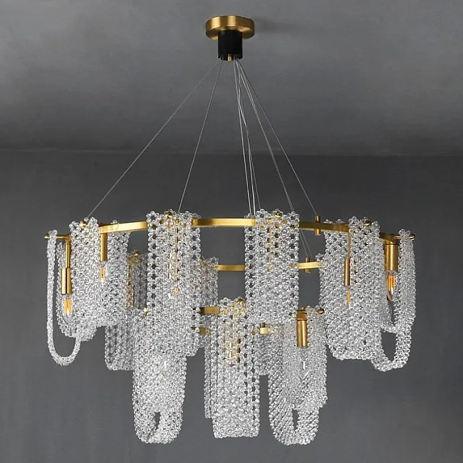 Серия светодиодных люстр на кольцевом каркасе с рельефными акриловыми рассеивателями изогнутой формы и металлическим корпусом