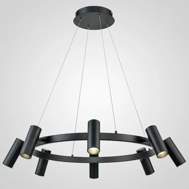 Современные светильники от молодых дизайнеров не бросаются в глаза, но задают тон всему интерьеру. Люстра KOBUS словно парит под потолком. На тонких проводах держится металлический обруч с плафонами удлиненной цилиндрической формы. Светодиодные светильники поворачиваются в любом направлении. Если купить люстру кольцевую KOBUS в России недорого, ее мягкий свет и оригинальный дизайн станут отличным решением для освещения обеденных зон.