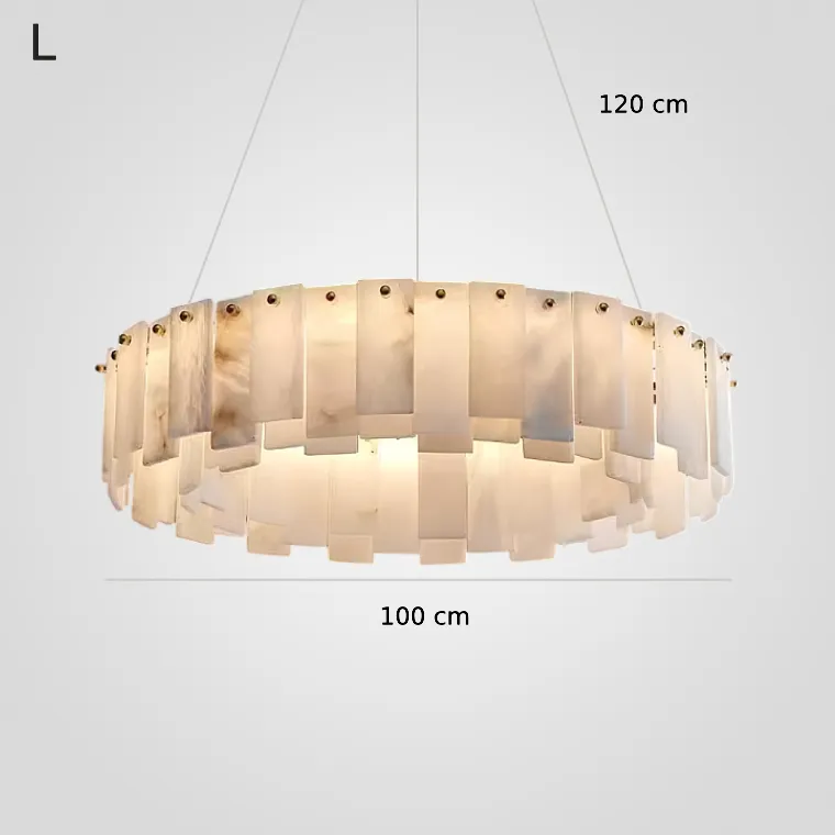 Серия кольцевых люстр на латунном каркасе с декоративными подвесками из испанского алебастра (мрамора) с выраженным природным рисунком