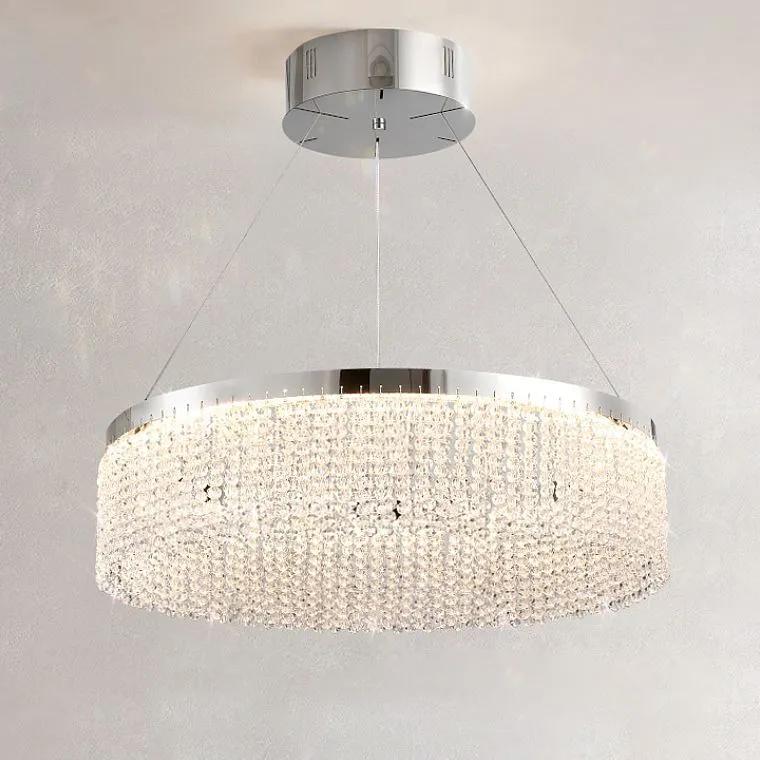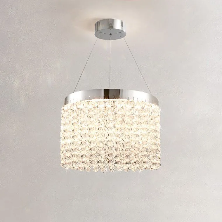 Корпус цвета хром, придает люстре изящный и блестящий вид. Хрустальные бусины, свисающие на цепочках, добавляют легкости и изысканности и, к тому же, отражают световые лучи, создавая игру красок и оттенков. Они с легкостью впишутся в любой интерьер, придав ему роскошный и современный вид.