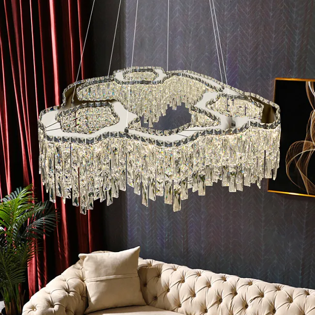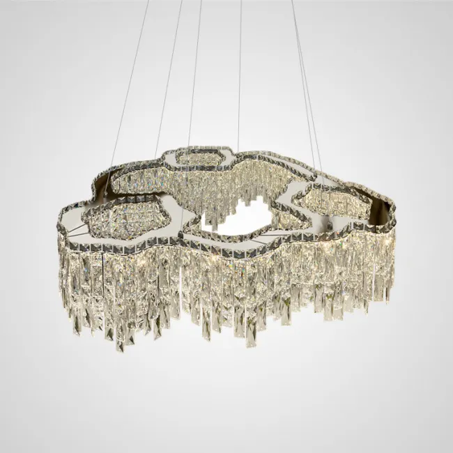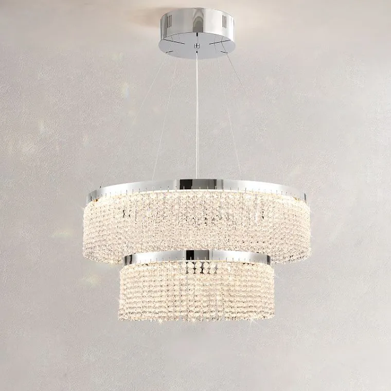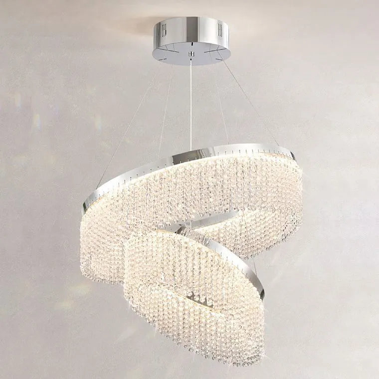 Хромированный корпус, придает люстре изящный и блестящий вид. Хрустальные бусины, свисающие на цепочках, добавляют легкости и изысканности и, к тому же, отражают световые лучи, создавая игру красок и оттенков. Они с легкостью впишутся в любой интерьер, придав ему роскошный и современный вид.