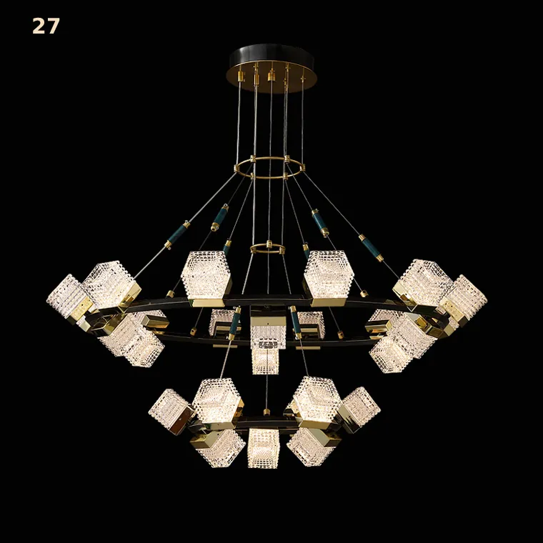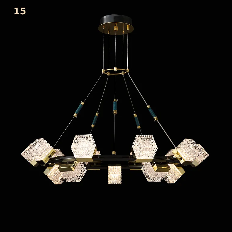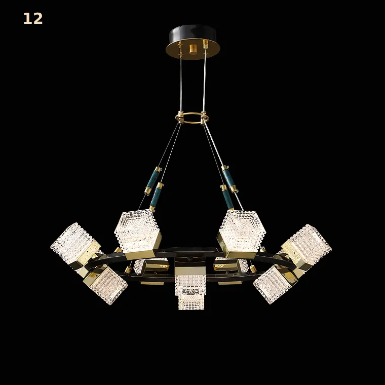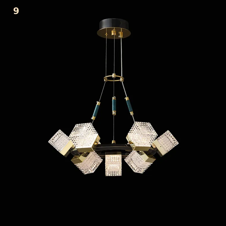 Серия кольцевых светодиодных люстр с рельефными рассеивателями кубической формы и декором из кожи
