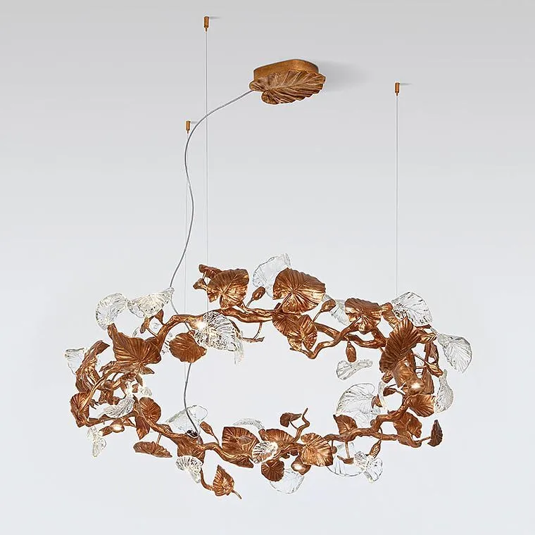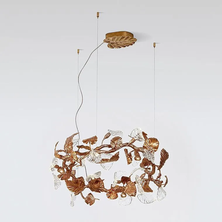 Представьте, как в вашем пространстве оживает магия природы, воплощенная в металле и стекле. Ветвистый каркас, словно древо, усеянный изысканными медными и стеклянными листьями, создает ощущение, будто в вашем доме поселился кусочек сказочного леса. Каждый листок, тщательно проработанный, играет с лучами света, рассыпая по комнате мягкие блики и тени.
