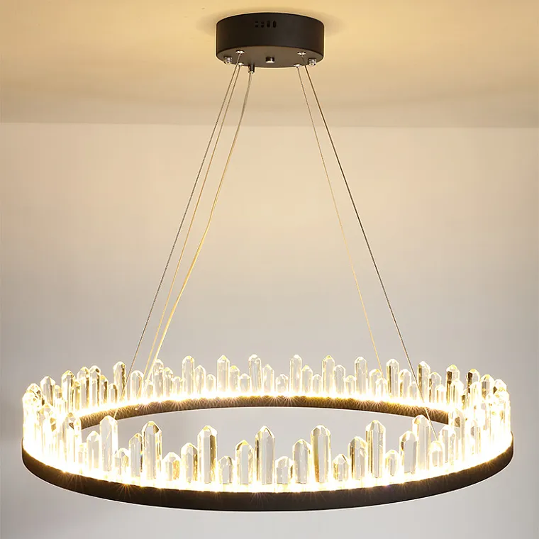 Хотите придать вашему дому роскошный и элегантный вид? Кольцевая люстра QUARTZ BLACK - это кольцевая люстра с разноуровневыми хрустальными рассеивателями в виде кристаллов, которая добавит яркости и блеска вашему интерьеру.