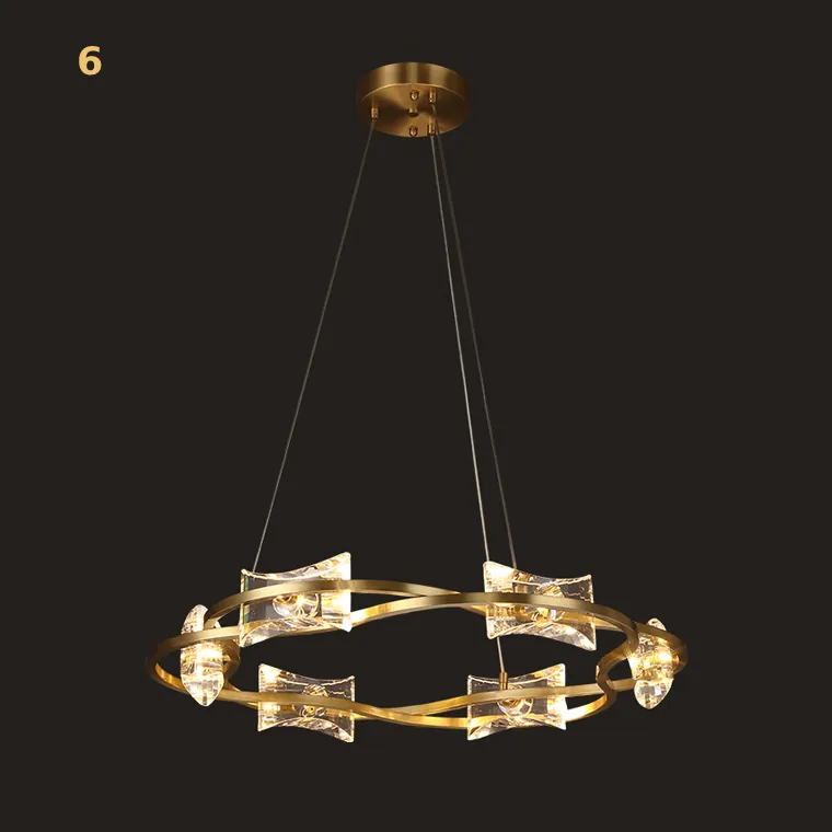 Серия кольцевых люстр с прозрачными плафонами в виде четырехугольных хрустальных слитков