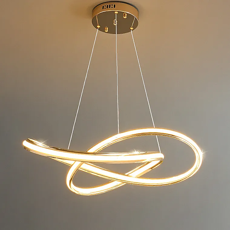 Серия светодиодных люстр на струнном подвесе с плафоном в виде замкнутой спирали с внутренней отделкой в цвете латунь