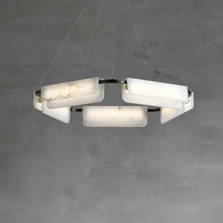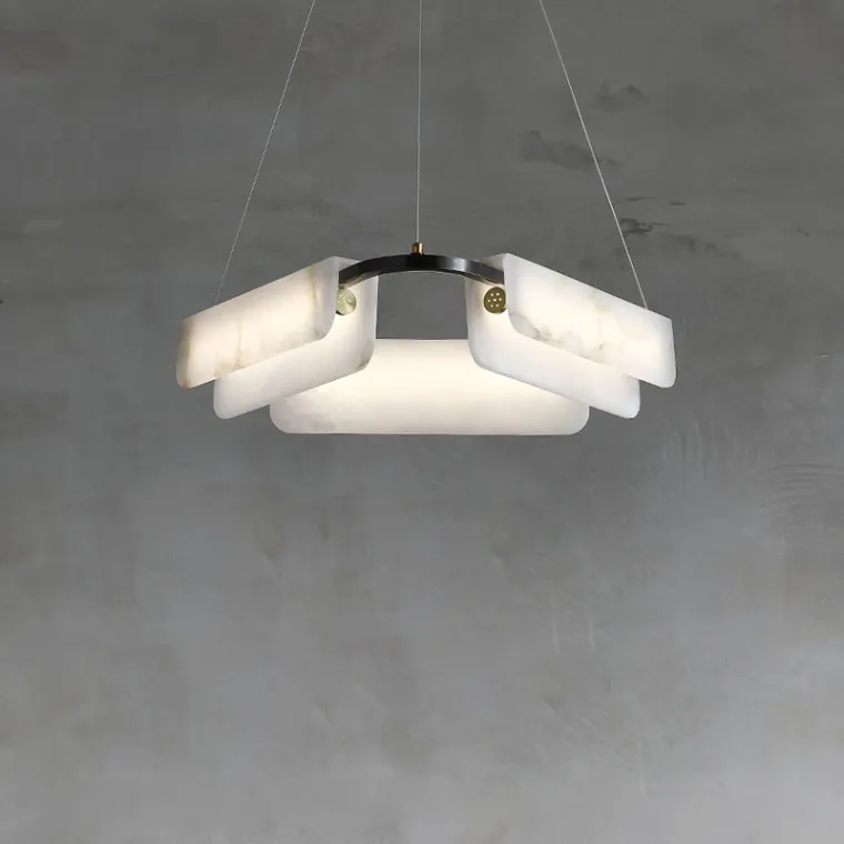 Серия светодиодных люстр на струнном подвесе с цилиндрическим плафонами в мраморных рассеивателях прямоугольной формы