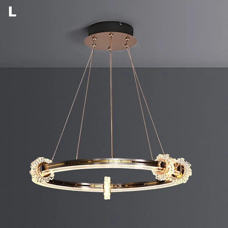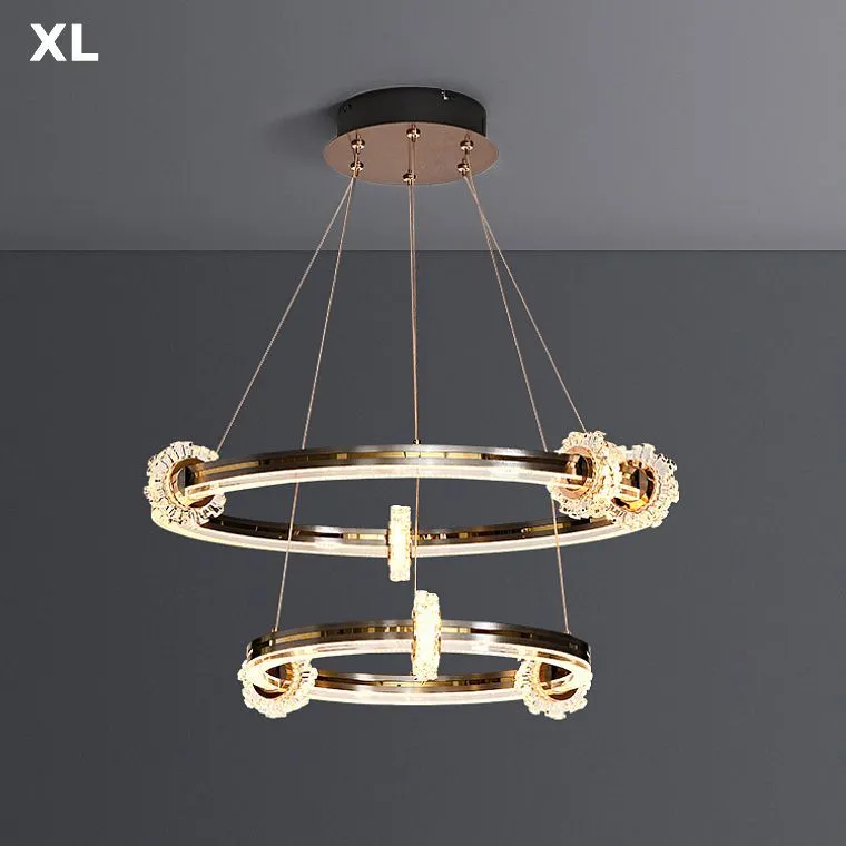 Серия светодиодных люстр с декоративными элементами в виде колец с кристаллами на кольцевом корпусе