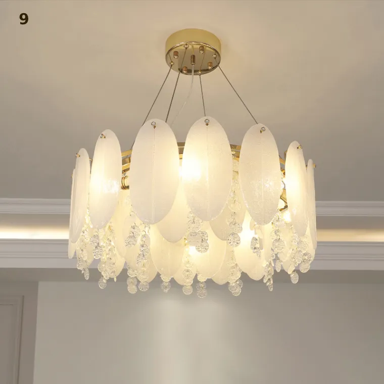 Серия кольцевых люстр с абажуром из дисковидных рельефных подвесок и стеклянных пластин миндалевидной формы