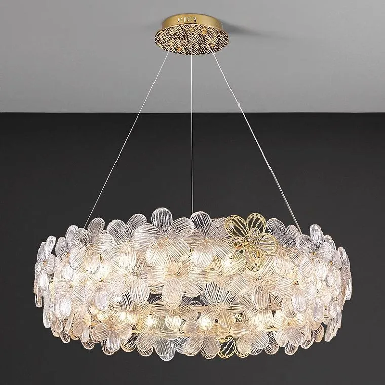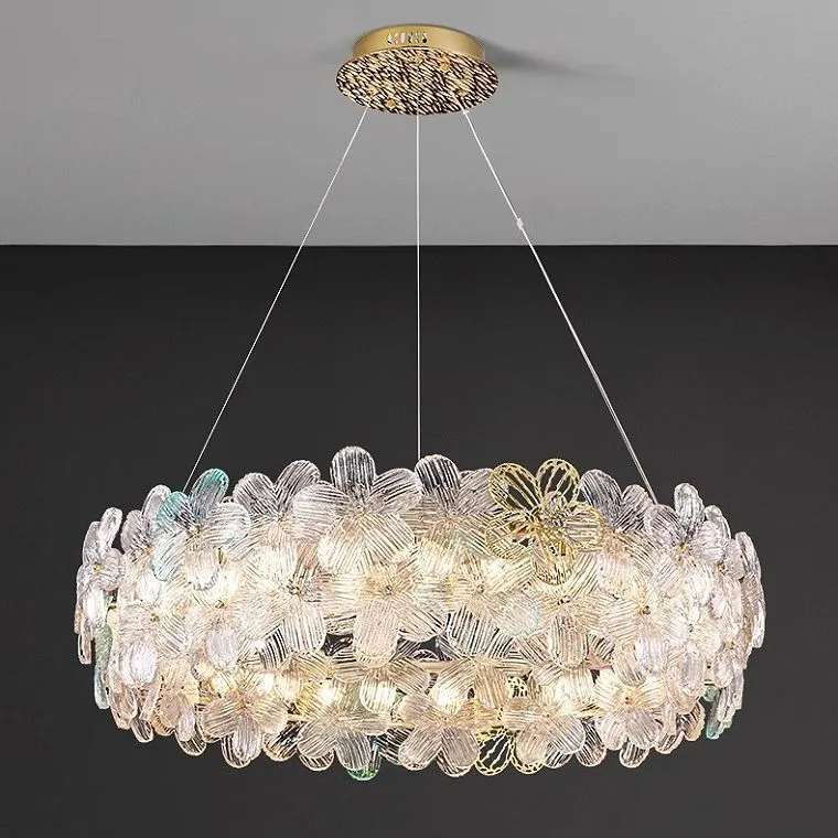 Создайте свой уникальный уютный уголок, наполненный теплом и волшебством, с помощью светодиодной люстры TOTTI с цветочным декором из стекла.