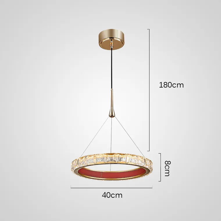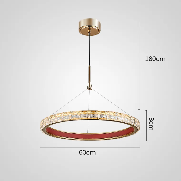Серия минималистичных кольцевых люстр с окантовкой из кожи и вставками из хрустальных рассеивателей