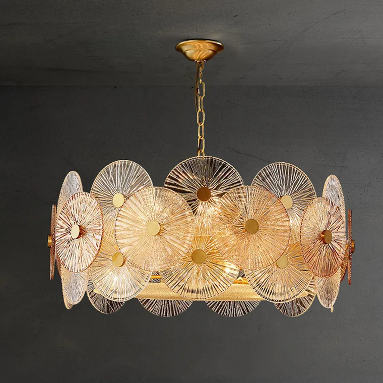 Подвесная люстра с рельефными боковыми дисками и нижним дополнительным рассеивателем
