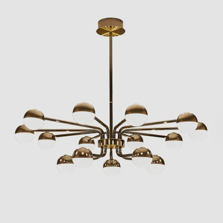 Серия светодиодных люстр на лучевом каркасе с поворотными плафонами шарообразной формы с оптическими линзами