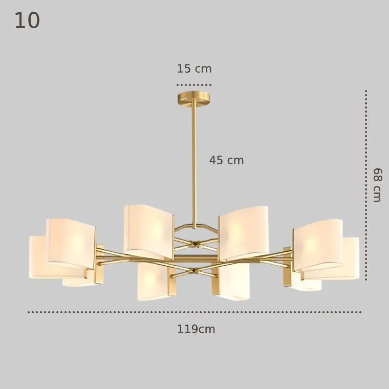 Люстра с текстильными рассеивателями прямоугольной формы на латунном каркасе