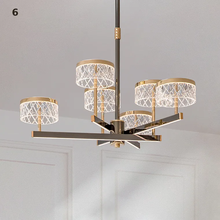 Серия светодиодных люстр с прозрачными плафонами цилиндрической формы с ромбическим рельефом