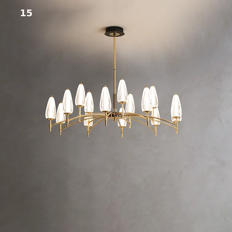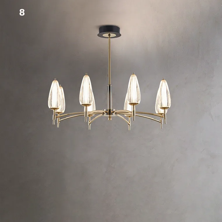 Серия светодиодных люстр со стеклянными рельефными плафонами конической формы