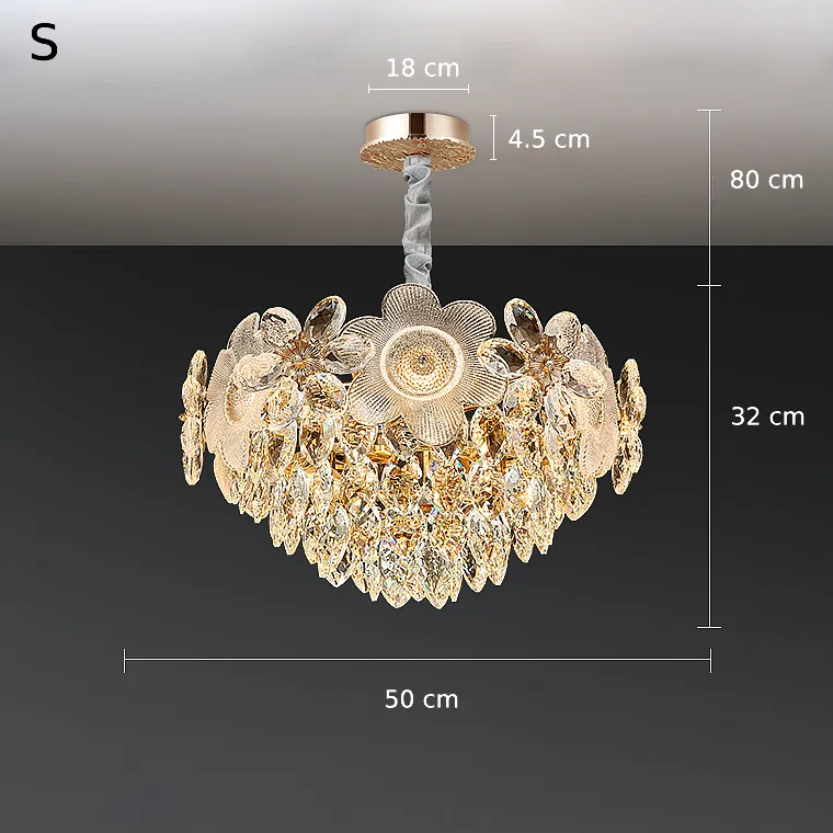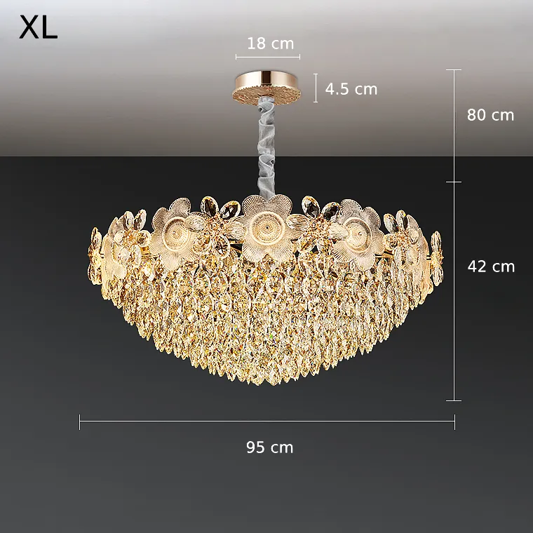 Серия люстр с многоярусным абажуром с подвесками из ограненного хрусталя и декоративных цветков из рельефного стекла