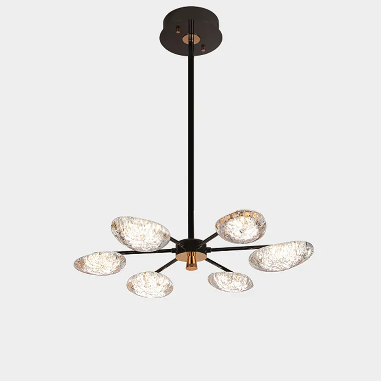 Серия светодиодных люстр на лучевом каркасе с миндалевидными рассеивателями с эффектом льда