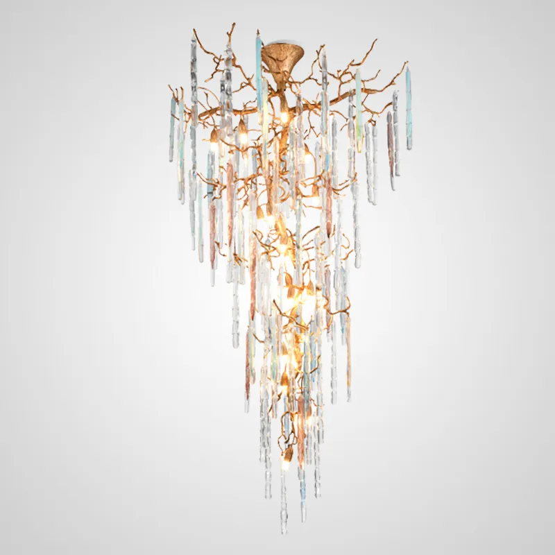 Самая лучшая люстра, которую я видела в жизни! Счастлива, что она теперь украшает семейный коттедж! Ручная кропотливая работа, и это видно. Всё очень аккуратно, подвески капельки одна на другую не похожи. Выглядят как перламутровые, красиво играют на свету. Они висят на золотистых веточках. Это даже символично, как будто снег тает весной и капает с дерева.
