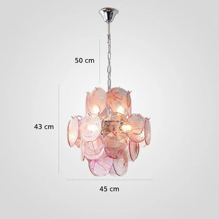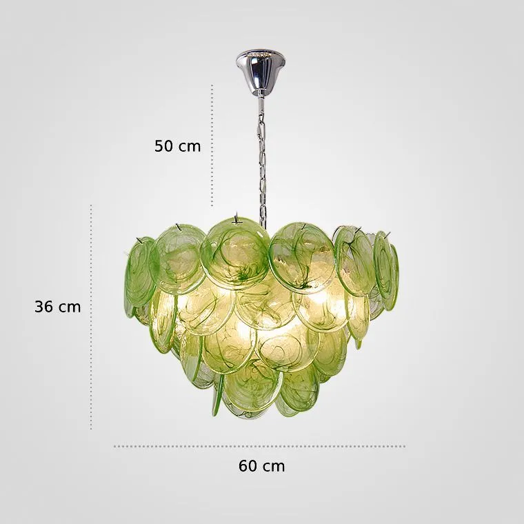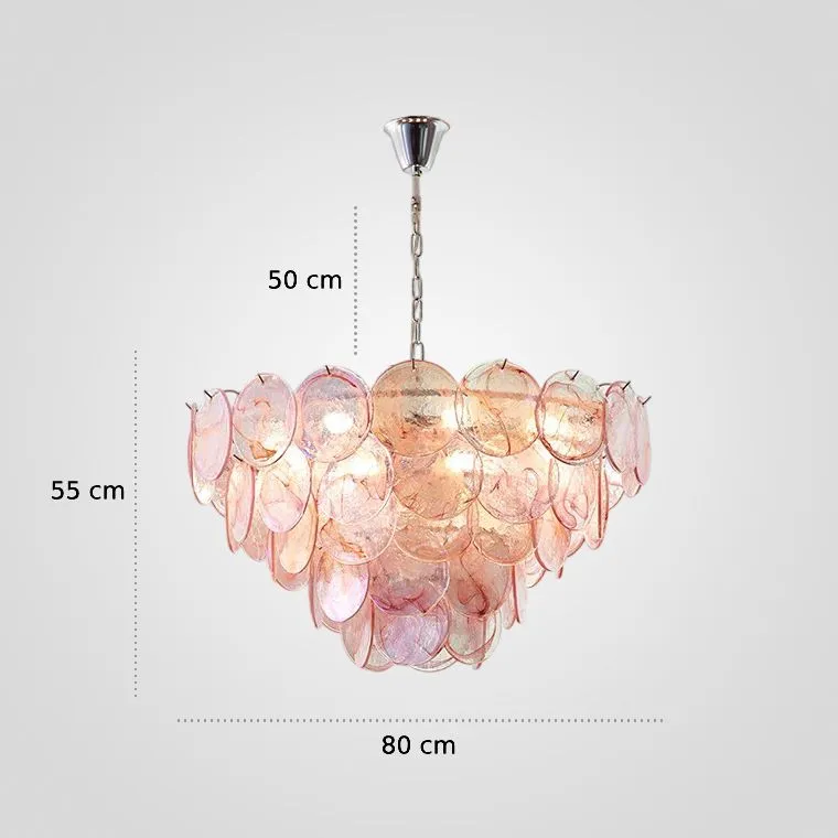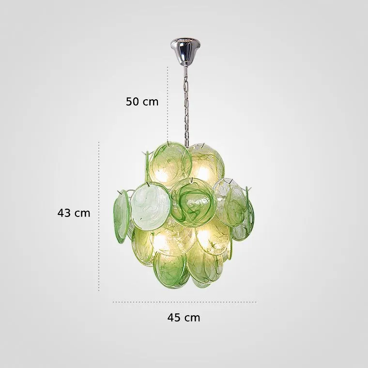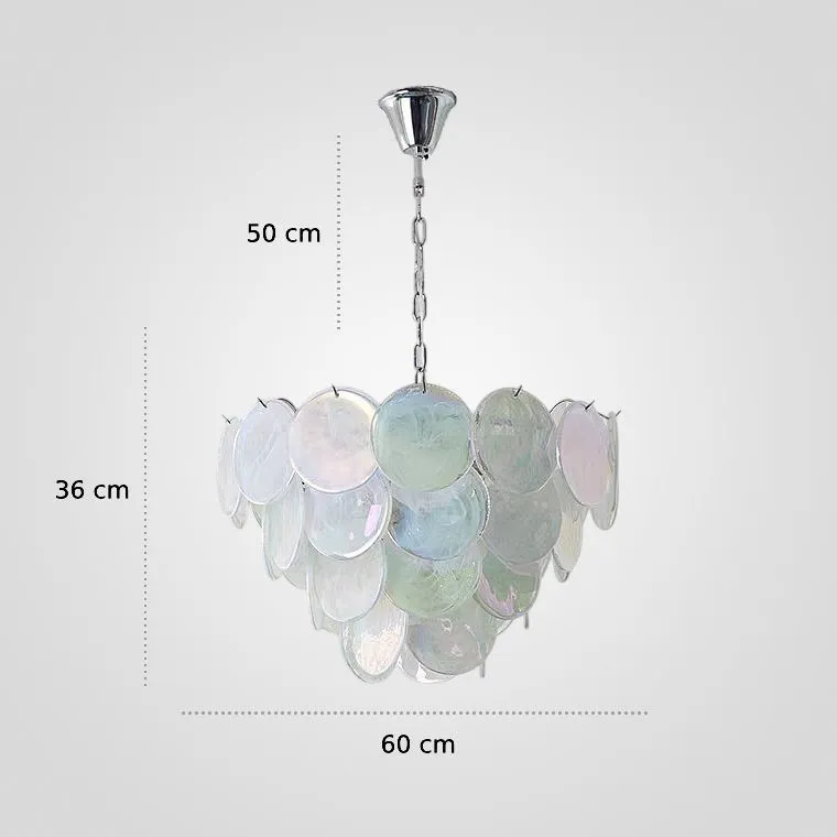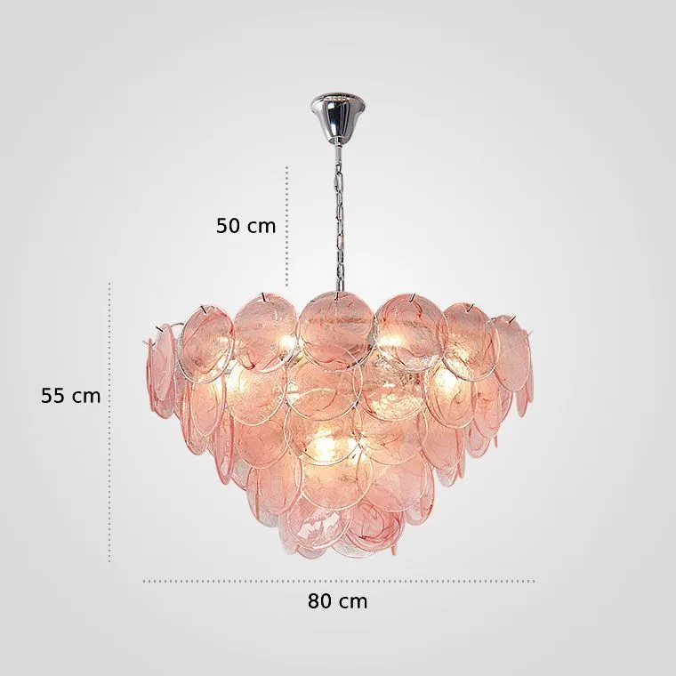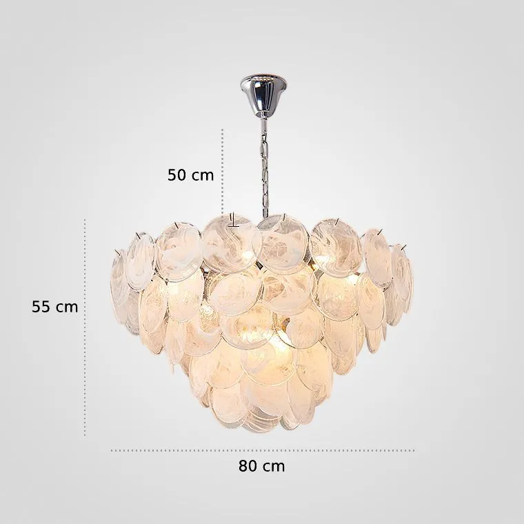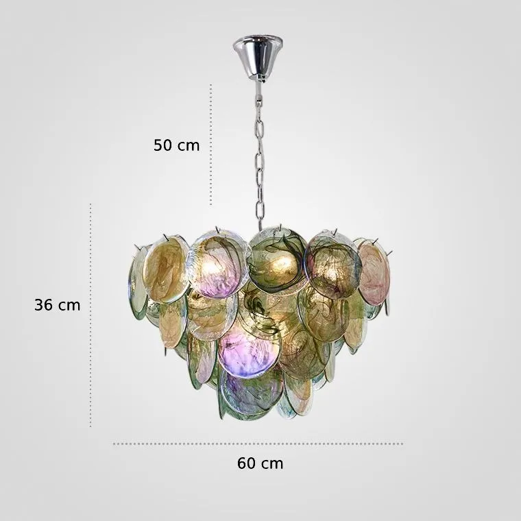 Серия люстр на цепном подвесе с каскадом стеклянных дисков различных оттенков с дымчатым узором