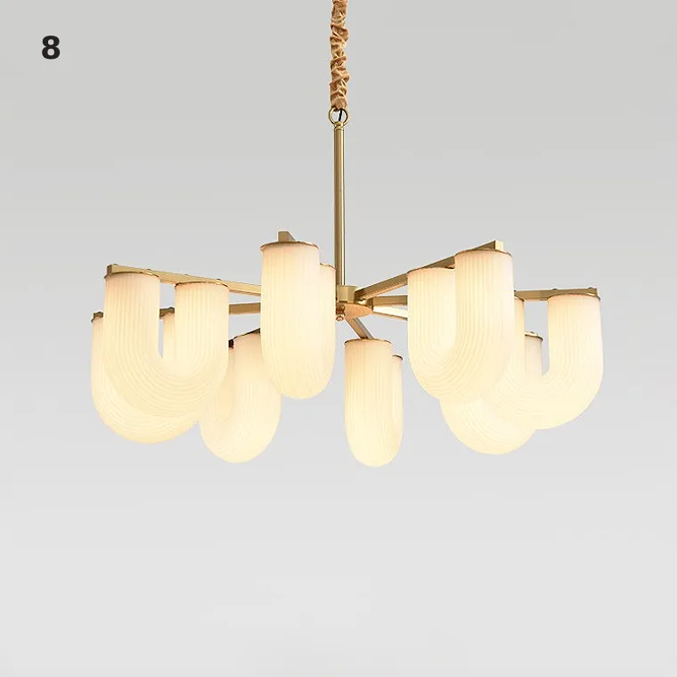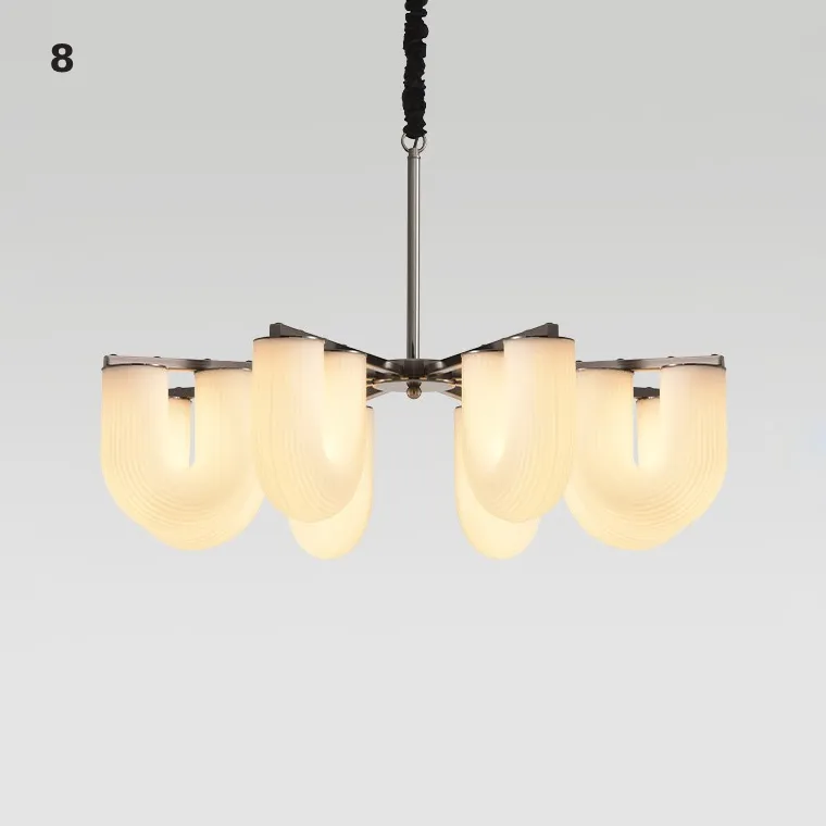 Серия светодиодных люстр на лучевом каркасе с трубчатыми расcеивателями из стекла С-образной формы