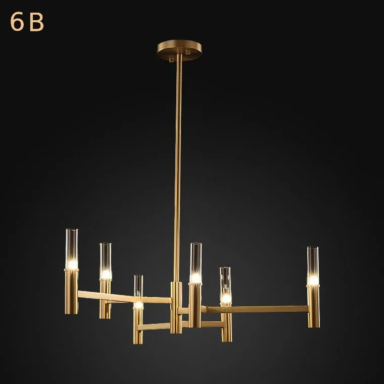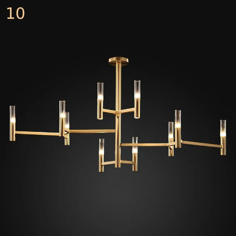 Сияющие стеклянные плафоны цилиндрической формы великолепно сочетаются с разветвленным каркасом, создавая неповторимый образ, который привлекает взгляды и уносит в мир роскоши. Латунный корпус, с его молекулярной формой, восхищает своей изысканностью и придает люстре особый шарм.