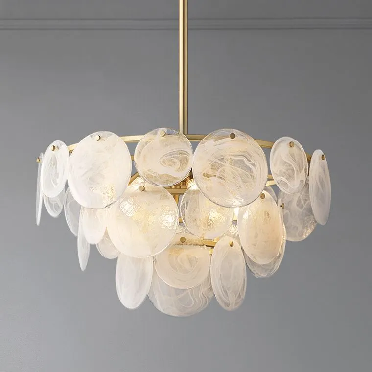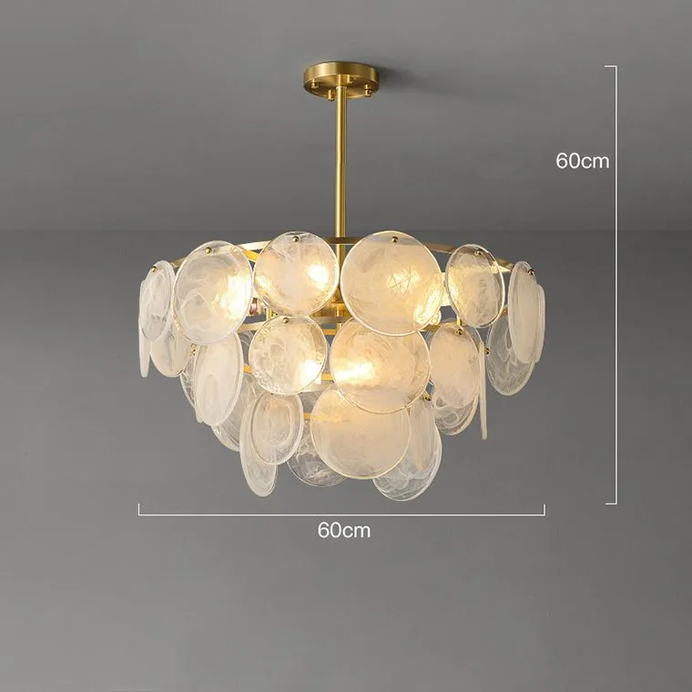 Люстра с абажуром из стеклянных круглых подвесок различного диаметра с эффектом «Белый дым»