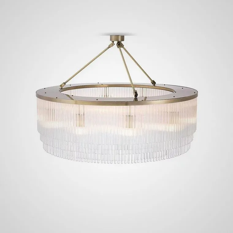 Дизайнерская подвесная люстра с составным абажуром из рядов стеклянных стержней