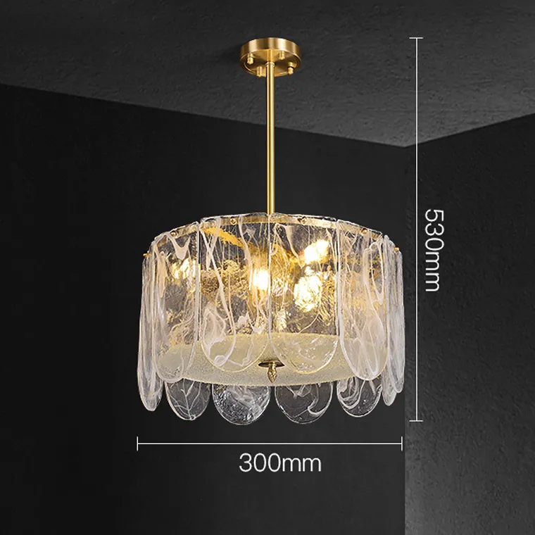 Серия люстр с абажурами из округлых стеклянных пластин с эффектом «Белый дым»