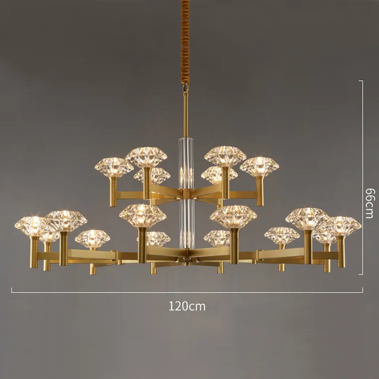 Люстра с декоративной хрустальной вставкой на корпусе и флористичными гранеными плафонами